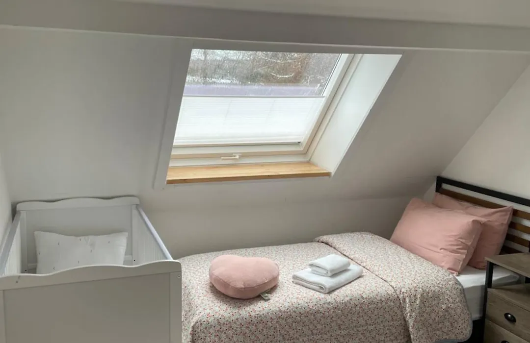 To ensure your comfort, a separate toilet and a shower are provided at the apartment. Moreover, there are a drier, towels, and slippers as well.